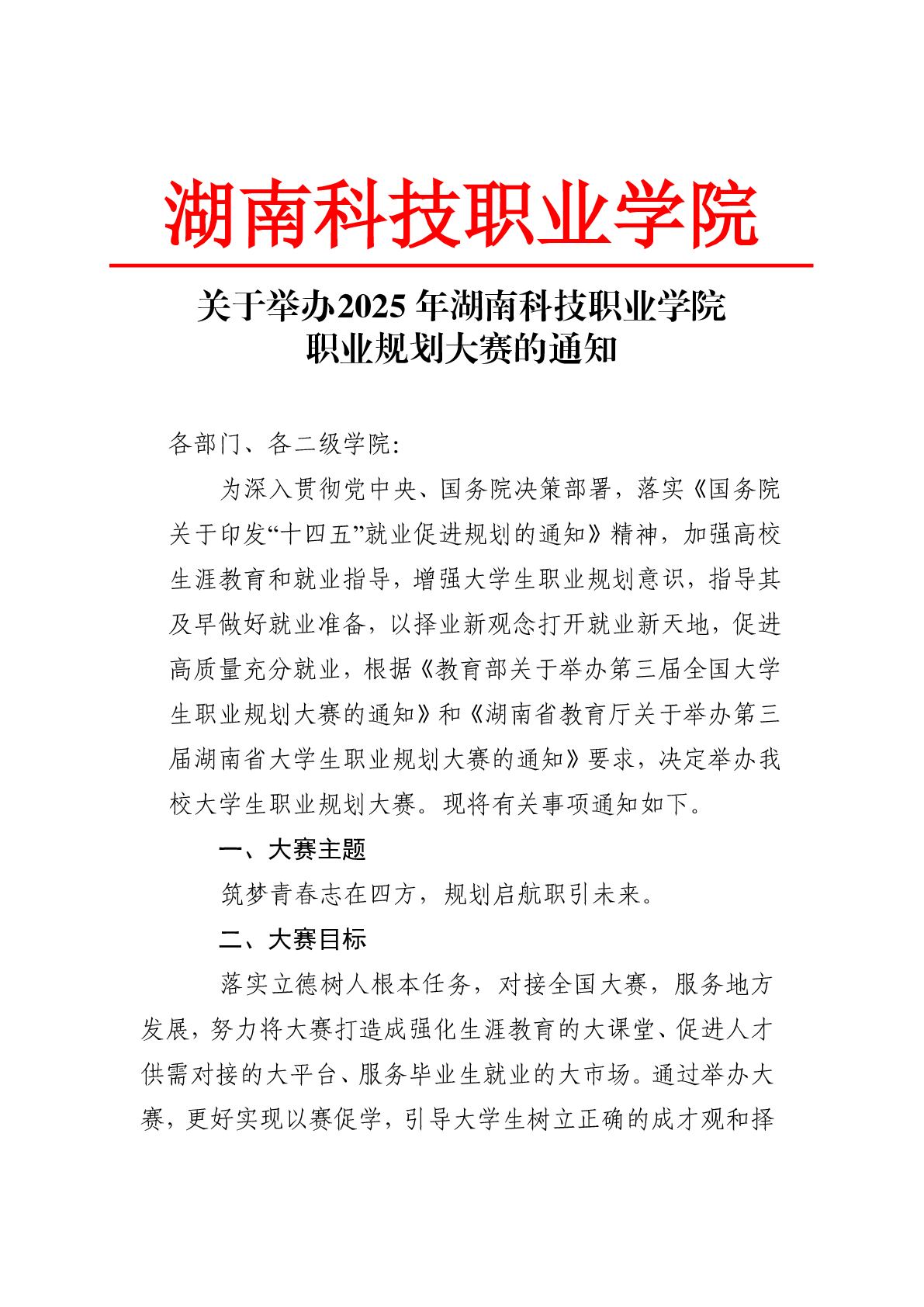 关于举办2025 年湖南科技职业学院 职业规划大赛的通知