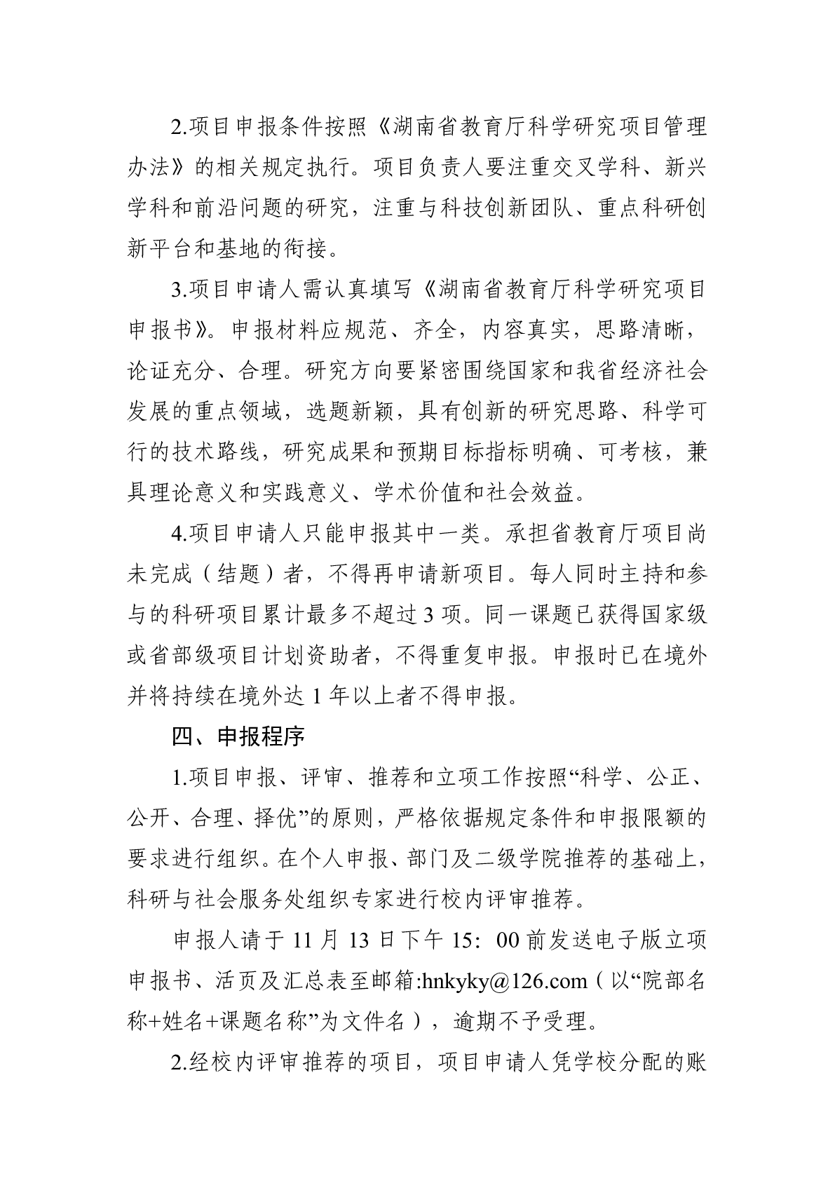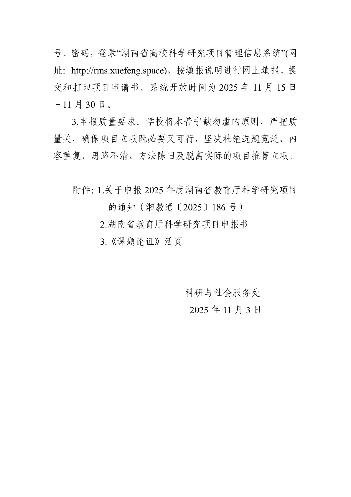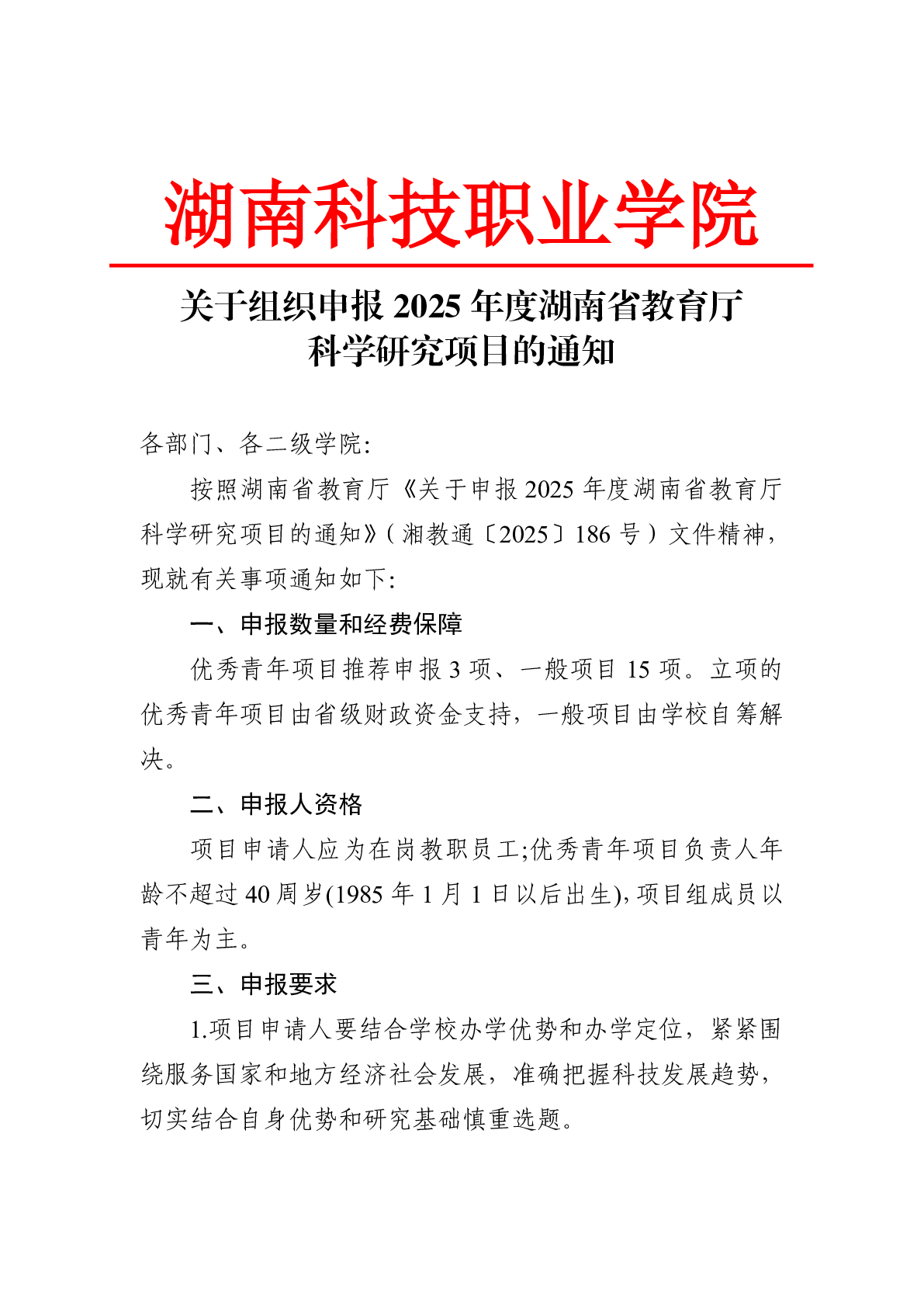 关于组织申报2025年度湖南省教育厅科学研究项目的通知
