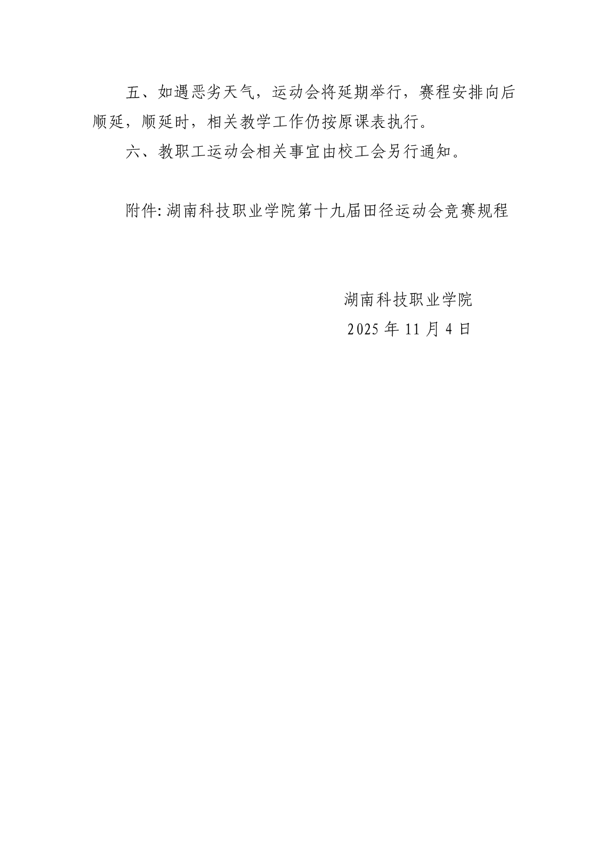 关于举办学校第十九届田径运动会暨2025年教职工运动会的通知