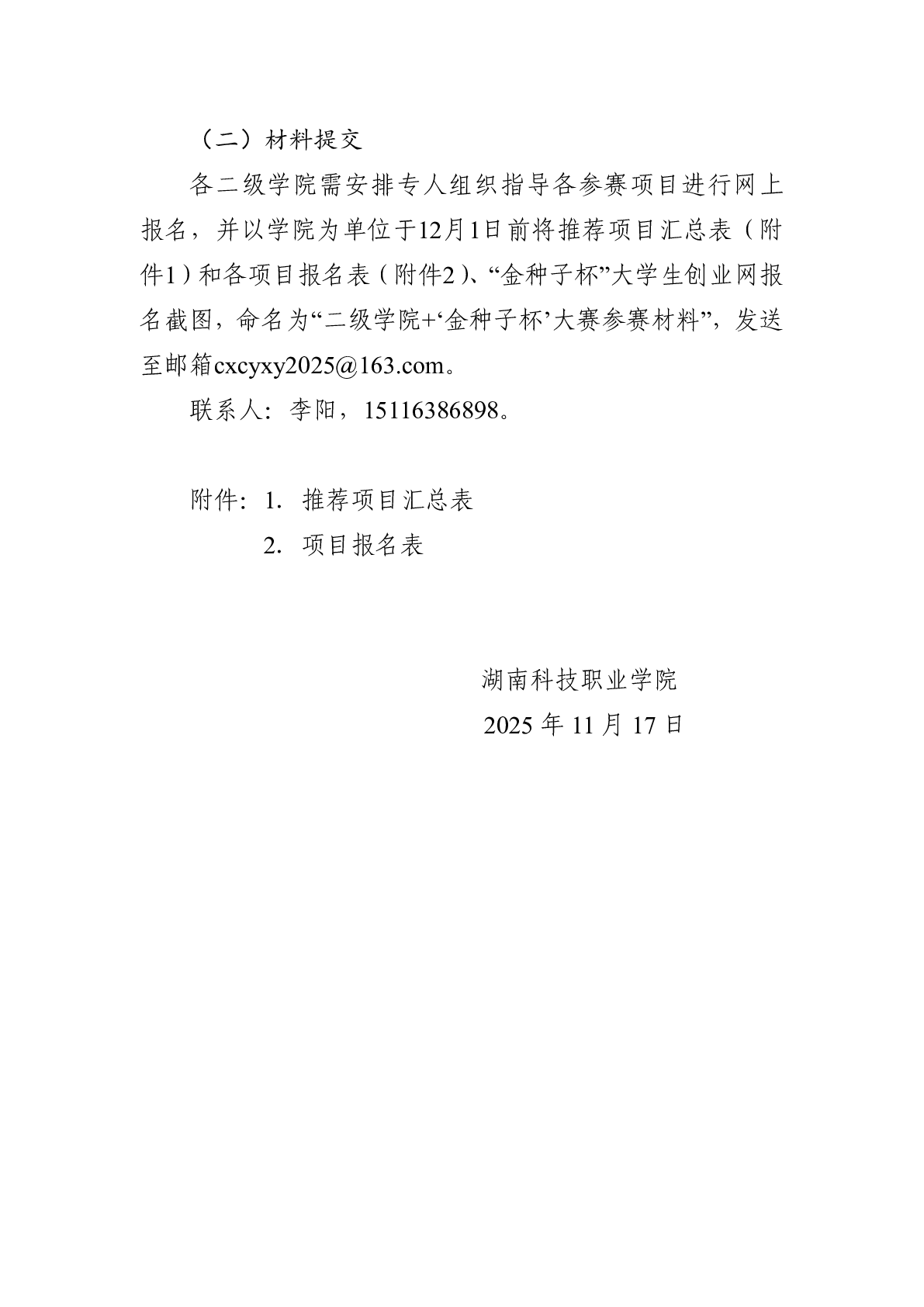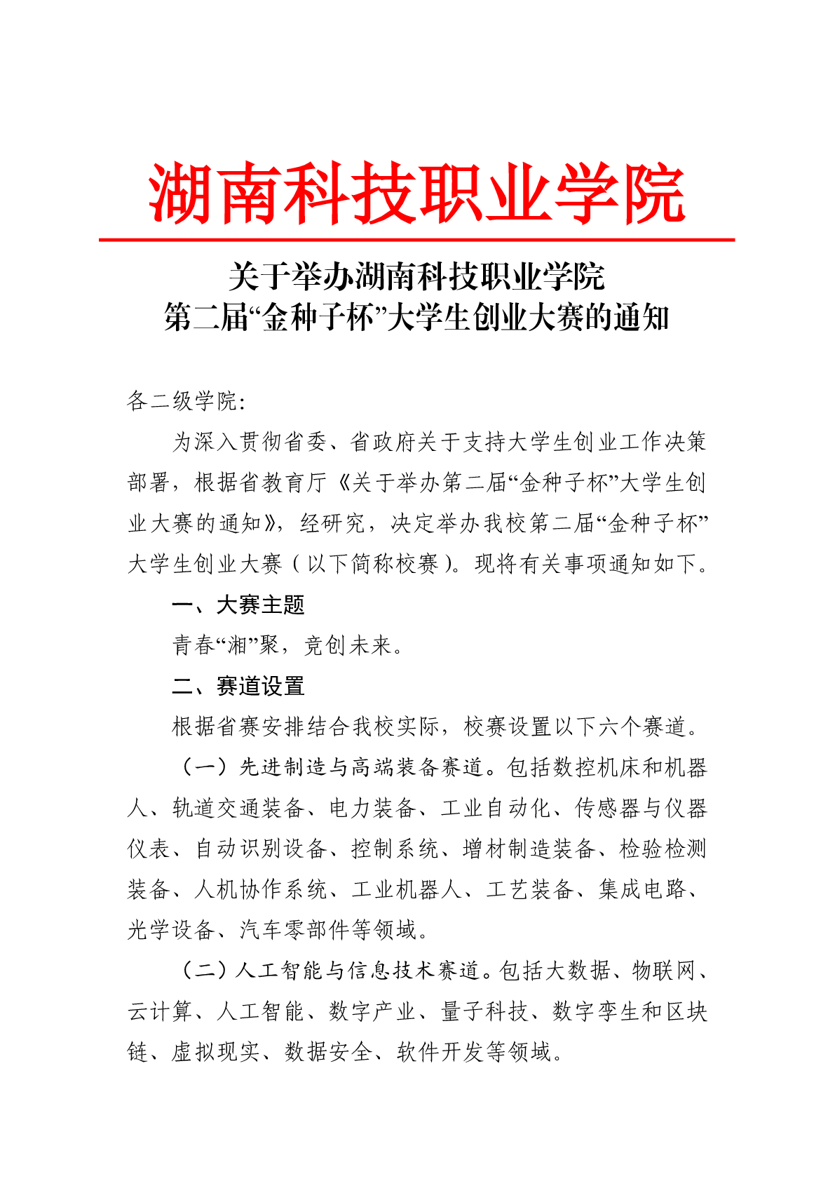 关于举办湖南科技职业学院第二届“金种子杯”大学生创业大赛的通知